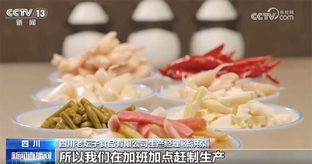 四川老坛子食品有限公司生产经理张洪泉称:“年产量大概是2万来吨,其中卖得最好的是青菜,也就是我们大家通俗说的酸菜。因为一直到春节前,需求量很大,预估比现在要多两到三倍的量,所以我们在加班加点地赶制生产。”