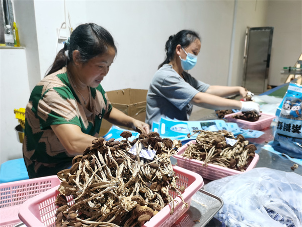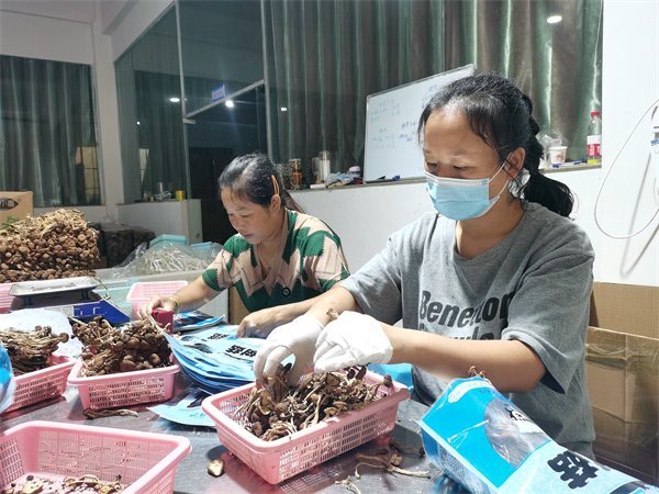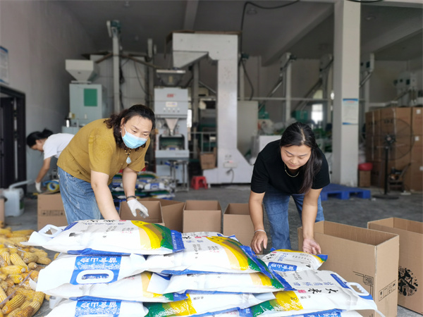 装袋、包装、密封、上车……走进松桃苗族自治县桃源土特产有限公司,工人们有条不紊地对珍珠花生、茶树菇、特色大米等本地土特产进行加工包装运往全国各地。目前,该公司有在职员工43人,仅2022年,通过各种不同的利益联结方式带动当地农户增收创收就高达750万元。