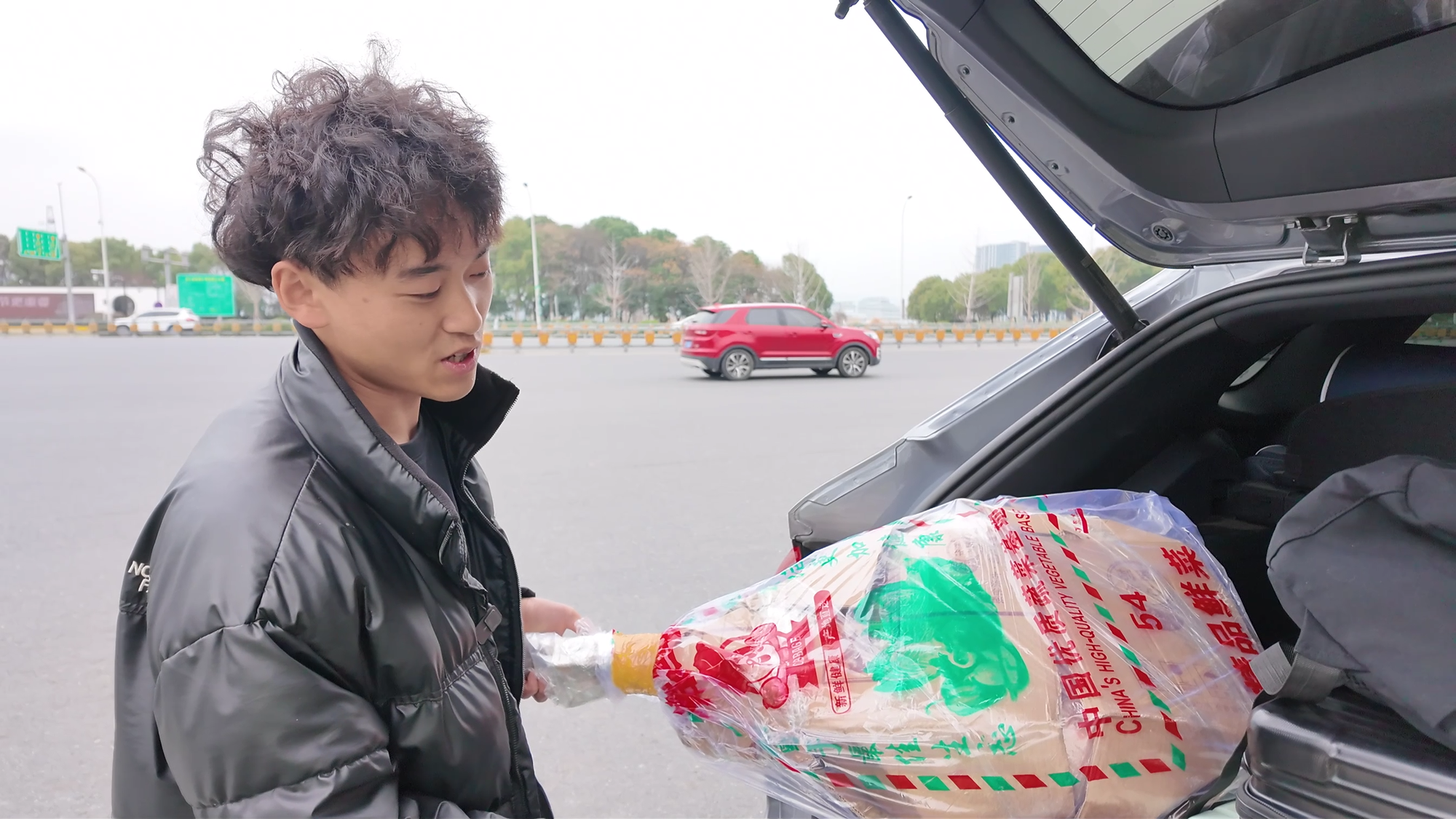 来自湖南的李冬集正在整理他的“家乡味”,以往17个小时的车程,因为堵车延长到了20个小时,打开后备箱,新鲜的莴笋萝卜、烟熏的腊肉腊肠、家里的柚子……满满当当,没有一丝空隙。
