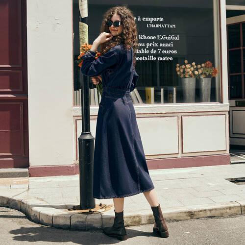 在繁忙的都市生活中,时间就是金钱。Olrain的这款连衣裙不仅美观大方,更是为了满足都市女性的快速穿搭需求而设计。它采用了柔软的牛仔面料,穿着舒适,让你在忙碌的早晨也能轻松应对各种场合,毫不费力地展现出优雅的气质。