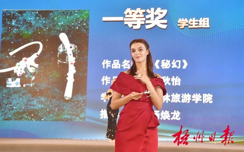 本次宝石时尚秀活动以“梧有瑰宝 携手时尚”为主题,融合饰品设计大赛获奖作品颁奖、宝石新品发布、AI虚拟走秀等环节,串联“中式美学—复古美学—数字秘境”等多元走秀场景,通过故事感与未来感兼具的呈现形式,让观众直观感受梧州从“宝石之都”向“时尚之城”升级的活力。