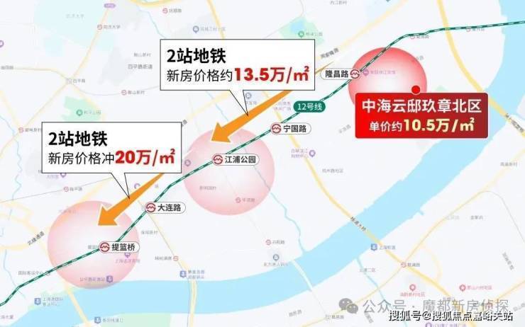 再2站地铁,就是北外滩,这里的绿城项目价格预计要20万/㎡!相比云邸玖章,地铁4站贵近10万/㎡,等预计价格落地成实际价格,你说云邸玖章会不会被抢爆!