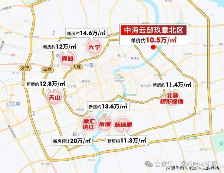 展开地图可以看到,徐滨上半年绿城19.5万/㎡售罄,即将上市的新房预计超20万/㎡.后滩项目均价约13.6万/㎡,大宁项目约14.6万/㎡,其他内中环板块绝大多数都超过11、12万/㎡!