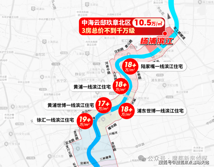 当然,跳出杨浦滨江板块,10.5万/㎡的单价同样是整个内中环的价格洼地!