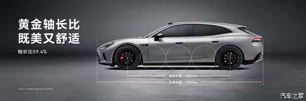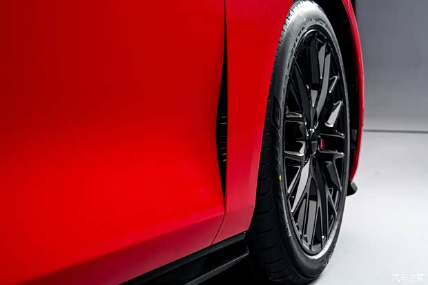 来到侧面,新车腰线设计充满张力,并且后轮眉采用宽体设计,营造出低趴效果。车身尺寸方面,新车长宽高分别为5050/1980/1470mm,轴距为3000mm,轮高比超51.9%,轴长比超59%,还有着21.5度猎装角,实现更大的装载空间,更美、更能装。车辆将会搭载21英寸轮圈,并提供前255mm/后275mm鸳鸯胎,内置彩色铝合金四活塞卡钳。