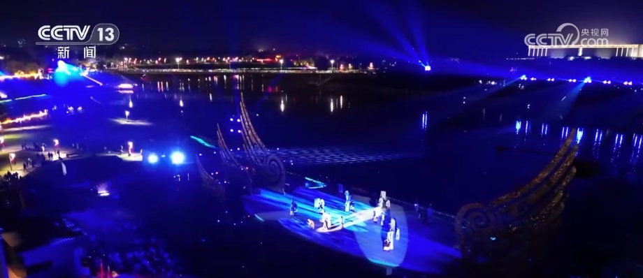 夜幕降临后,洹河之畔的《洹溯·大邑商》大型实景演艺拉开帷幕。演出通过声光电技术与戏剧、舞蹈相结合,生动再现“玄鸟生商”“盘庚迁殷”等历史场景。《再现·大邑商》等数字体验项目同样人气爆棚,游客佩戴XR设备即可化身商朝战士参与“巴方伏击战”,身临其境感受殷商战场氛围。