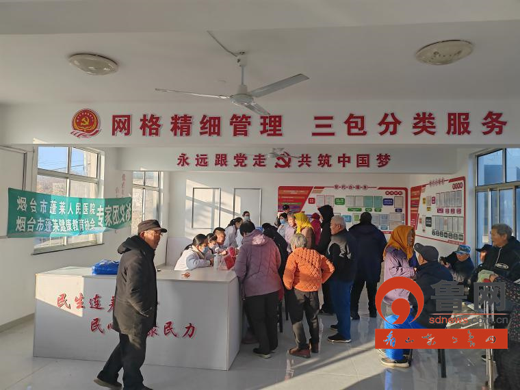 烟台市蓬莱区南王街道三包家村是烟台市蓬莱人民医院的帮扶共建对子。听说人民医院的医疗专家要来,不少村民早早来到村委会大院排队等候,一向安静的三包家村在这个冬日清晨一下子如节日般热闹了起来。义诊专家团的医护人员一下车,便迅速支展架、摆仪器,布置好义诊席位,一个小小的“流动医院”在村委文化活动室搭建起来了。