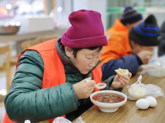 活动现场暖意弥漫。工作人员将精心熬煮好的腊八粥分装在碗中,逐一递到参与者手中。热气腾腾的腊八粥,不仅驱散了冬日的凛冽寒意,更让大家真切感受到节日的浓厚氛围。大家围坐在一起,一边品尝着软糯香甜的腊八粥,一边分享着各自过腊八节的独特经历,同时也畅谈工作中的日常点滴,现场氛围和谐融洽。“天没亮就开始干活,冻得手脚都没了知觉,喝上这碗热粥,浑身都暖乎乎的!”刚结束早班清扫工作的环卫工张阿姨捧着粥碗,冻得通红的脸上露出了质朴的笑容。
