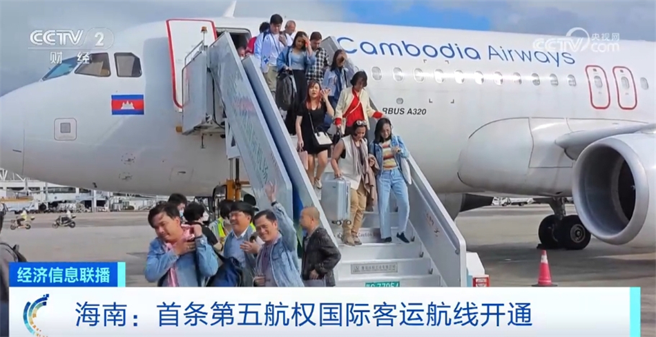 海南:首条第五航权国际客运航线日上午,一架自柬埔寨金边起飞的民航客机降落在我国海南三亚,而后该航班继续起飞前往新加坡,这是海南开通的首条第五航权客运航线日上午,由柬埔寨航空有限公司执飞的KR9755航班从金边飞抵我国海南三亚后,机上一部分旅客走下飞机在三亚进行了旅游活动,此前在候机楼等候的一部分旅客办理登机手续后继续起飞前往新加坡。