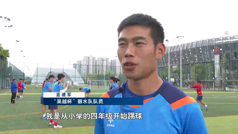 “吴越杯”丽水队队员 蓝建军:之前我的职业是货车司机,我在丽水队踢后卫。我是从小学的四年级开始踢球,努力拿下这场球的话觉得很开心。
