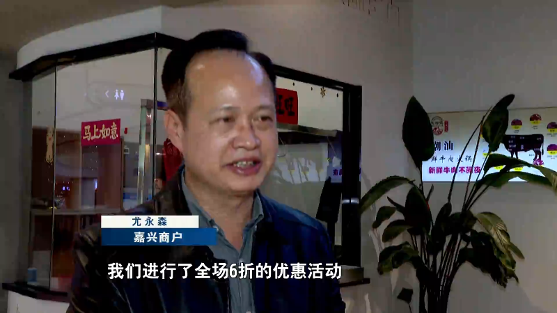 嘉兴商户 尤永森:根据他(球迷)的票根来我们店里面,我们进行了全场6折的优惠活动,助力这一次的盛会。