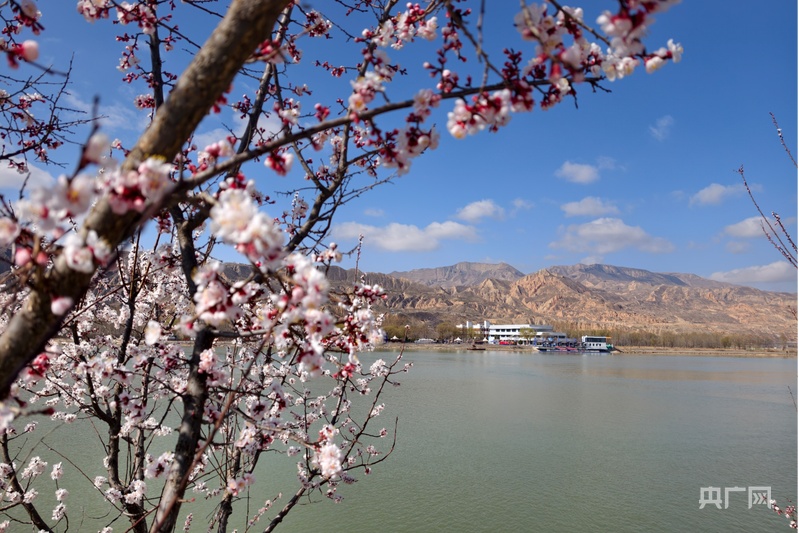 青海省海东市化隆县,清清黄河与粉白杏花共同构成美好的春日画卷(央广网记者 张海东 摄)